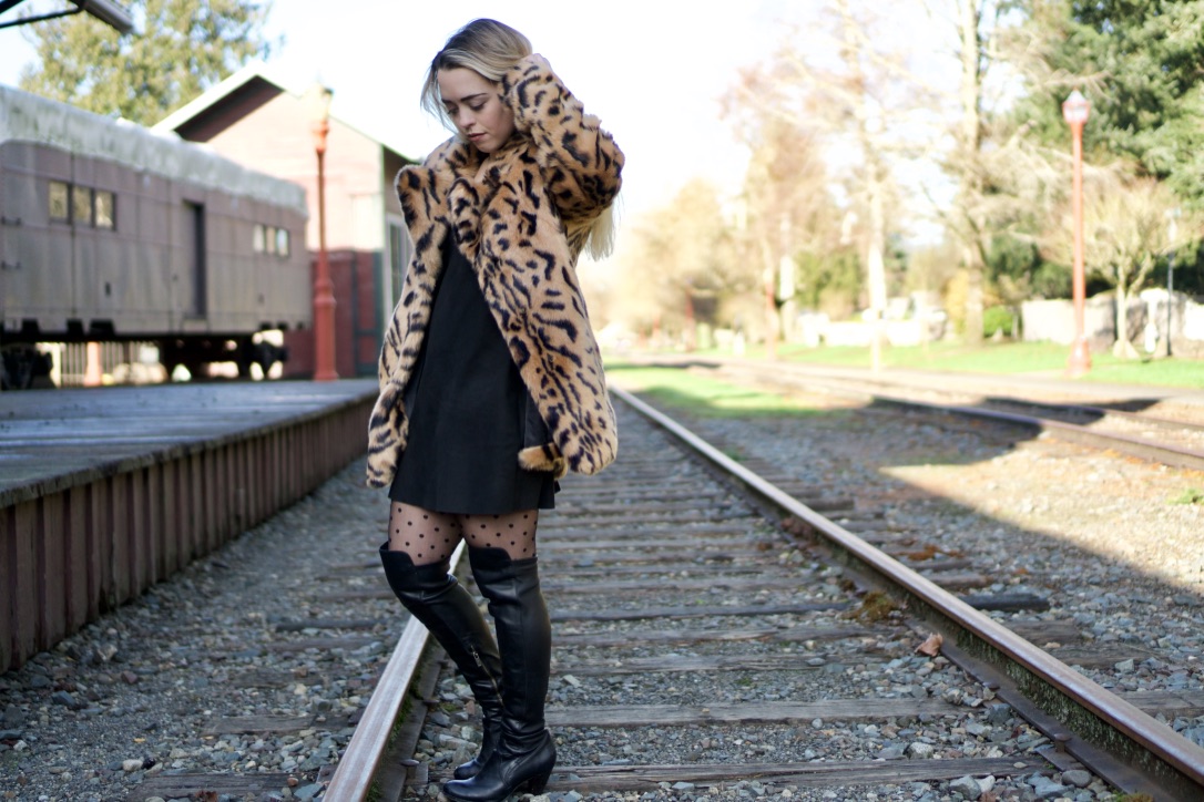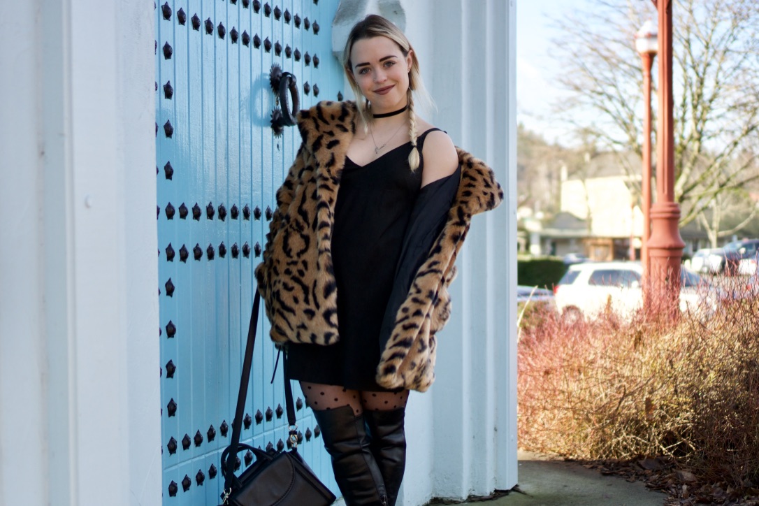Dress your leopard print up with any little black dress and a snazzy pair of boots! This look is ready to take you out on the town on a Friday night!